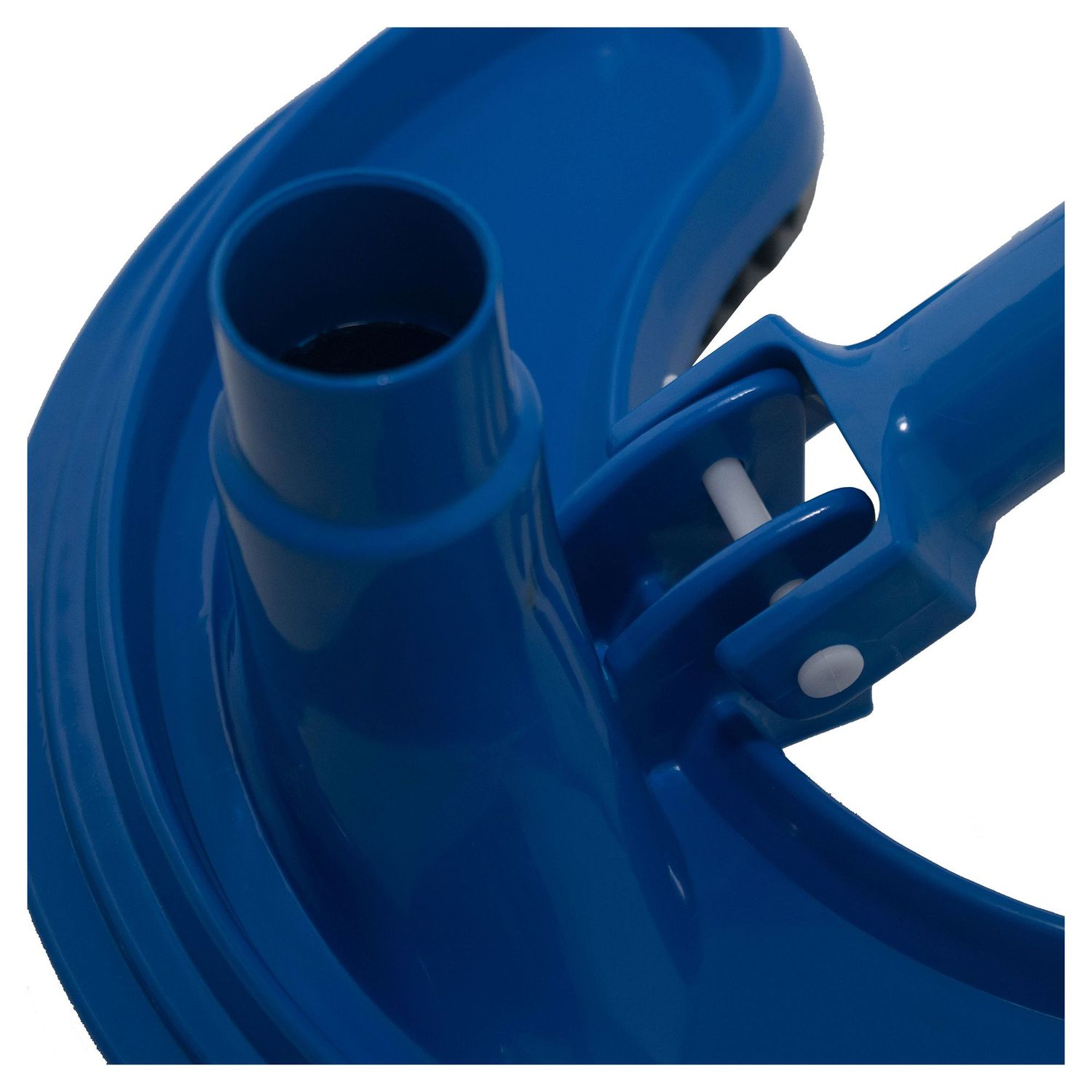 Este limpiafondo está fabricado en plástico de alta calidad, lo que lo hace resistente a los productos químicos utilizados en el mantenimiento de la piscina. Su conexión a pértiga y manguera te permite llegar a cualquier rincón de tu piscina sin necesidad de agacharte. Además, su color azul le da un toque moderno y elegante.