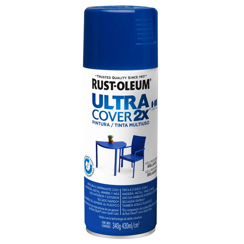 Dale un toque de color a tus proyectos con el Aerosol Ultra Cover 2x azul profundo brillante de Rust-Oleum. Esta pintura en aerosol es ideal para renovar muebles, objetos de metal, madera y plástico, tanto en interiores como en exteriores. Su fórmula de doble cobertura te permite obtener un acabado profesional en menos tiempo, con un color intenso y duradero. ¡No te pierdas la oportunidad de darle una nueva vida a tus objetos con este producto de alta calidad!