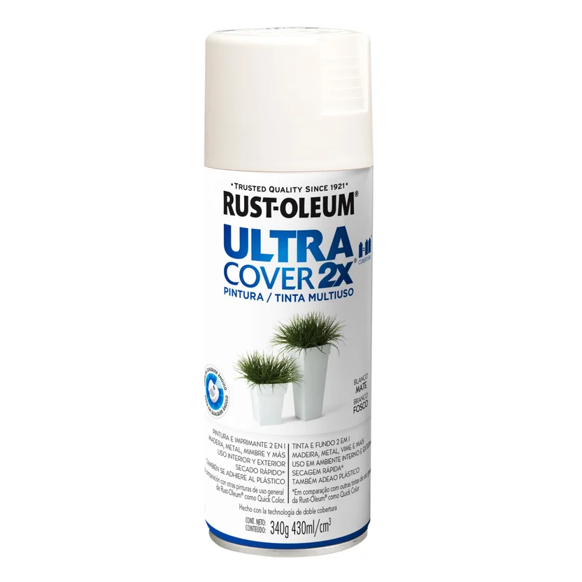 Dale un toque de color a tus proyectos con el Aerosol Ultra Cover 2x blanco mate de Rust-Oleum. Esta pintura en aerosol es ideal para renovar muebles, objetos de metal, madera y mucho más. Su fórmula de secado rápido te permite obtener resultados profesionales en poco tiempo. ¡No te pierdas la oportunidad de darle un nuevo look a tus espacios con este producto de alta calidad!
