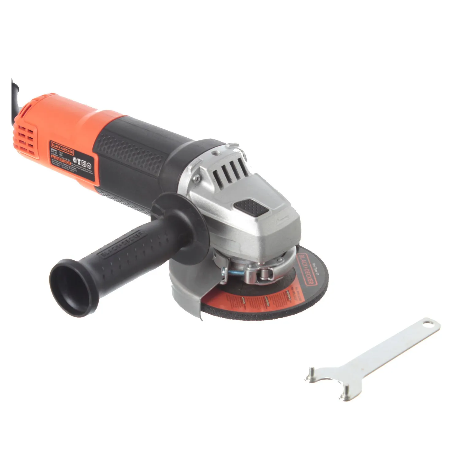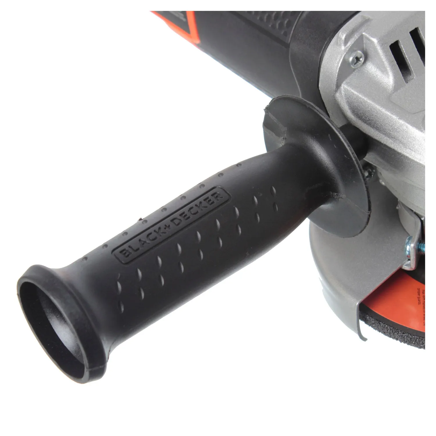 Esta amoladora angular eléctrica BLACK+DECKER cuenta con una velocidad de 10000 rpm y un diámetro de disco de 115 mm, lo que la hace perfecta para cortes y desbastes precisos. Incluye una empuñadura lateral, una llave y un disco abrasivo para que puedas comenzar a trabajar de inmediato. Su largo de cable es de 2 m.