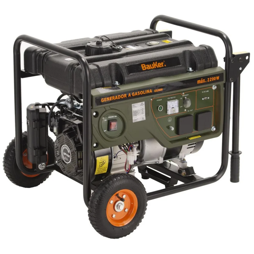 Este generador cuenta con un motor naftero de 4 tiempos que te ofrece un funcionamiento eficiente. Su voltaje de 220 V te permite conectar una variedad de dispositivos, mientras que su capacidad de 15 litros te asegura un uso prolongado. Además, incluye una salida de 12 V para cargar tus dispositivos electrónicos. El generador Bauker GG2800 es ideal para uso profesional, ya que te ofrece la potencia y la confiabilidad que necesitas para tus proyectos.