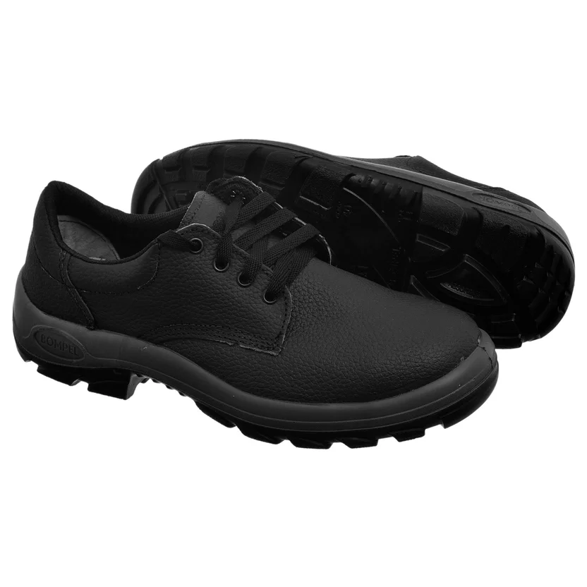 Este calzado de seguridad, de origen brasilero, está fabricado con cuero y goma, lo que garantiza durabilidad y resistencia. Cuenta con una planta de goma que proporciona un agarre firme. Además, su diseño incluye una puntera de seguridad para una protección extra.
