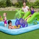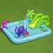 La piscina tiene una capacidad de 308 litros y está diseñada para soportar hasta 45 kg. El rociador de agua se conecta a la manguera de jardín, lo que permite refrescar a los niños mientras juegan. La piscina está fabricada con materiales de alta calidad y es fácil de inflar y desinflar. Es ideal para niños a partir de los 2 años.