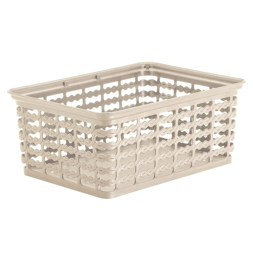 El Canasto Organizador de Plástico Taupe de 4L es un producto versátil y práctico. Fabricado en plástico resistente, este canasto tiene una capacidad de 4 litros y es apilable, lo que te permite optimizar el espacio de almacenamiento. Su diseño en color Taupe le da un toque moderno y elegante a cualquier ambiente.