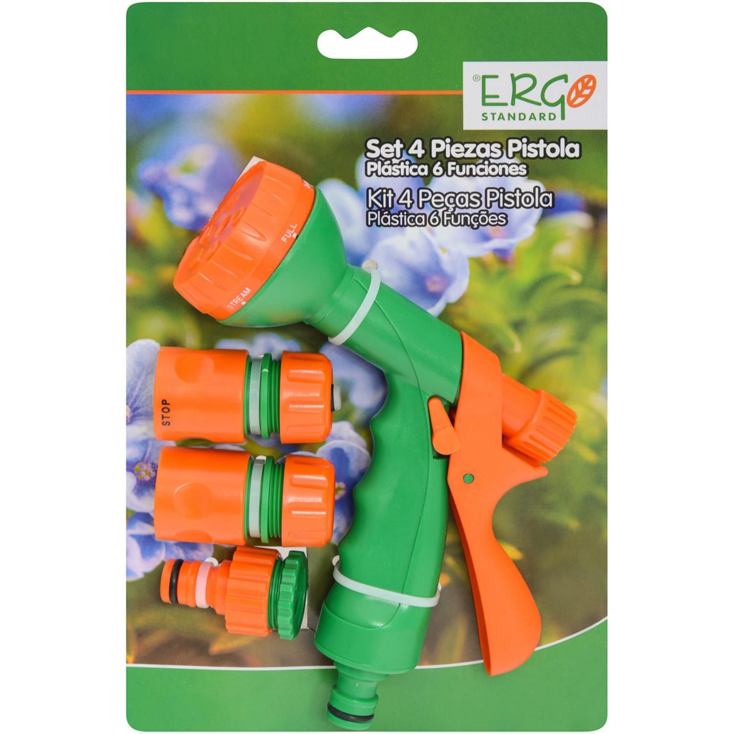 Set de 4 piezas con pistola plástica de 6 funciones