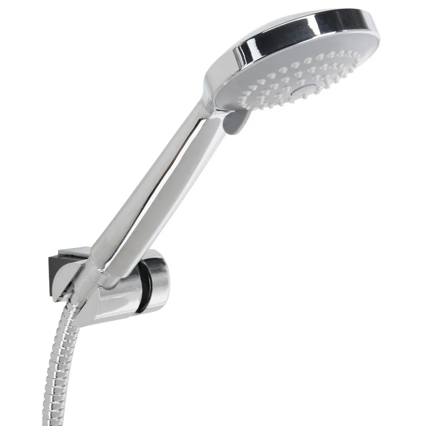 Kit de duchador con mango y flexible de niquel y plástico plateado