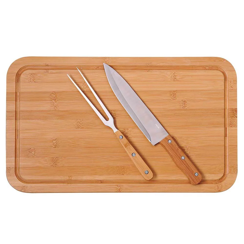 Set de asado 3 piezas con tabla, cuchillo y pincho