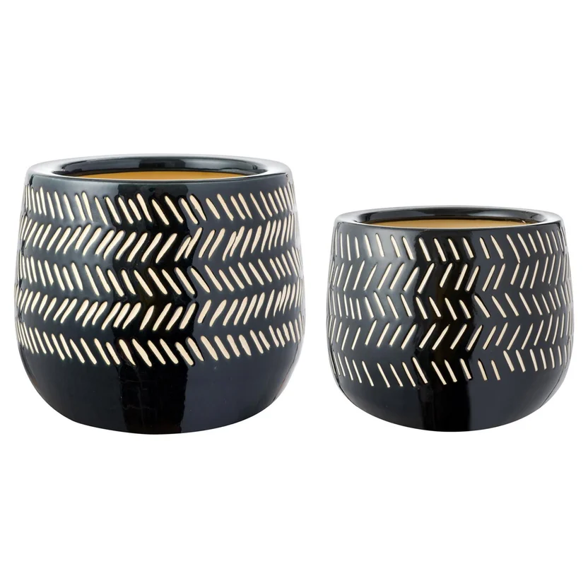 Dale un toque de elegancia a tu hogar con el Set por 2 macetas Himba. Estas macetas clásicas de color negro, son perfectas para darle vida a cualquier espacio. ¡Imagina la belleza que aportarán a tus plantas!