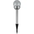 La Estaca Solar LED Esfera Color está fabricada en metal y vidrio, con un acabado en color gris. Su altura total es de 35,8 cm y cuenta con un LED integrado que proporciona una luz cálida y acogedora. La estaca se alimenta con energía solar, lo que la convierte en una opción ecológica y económica. Además, incluye una sola unidad y tiene una garantía de 3 meses.