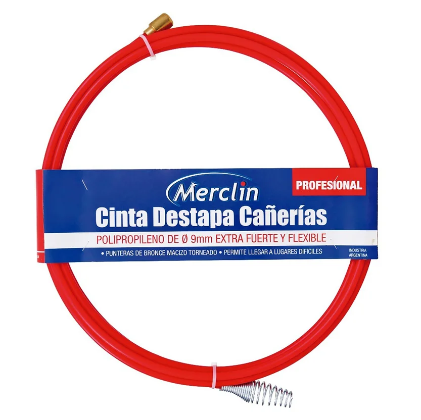 Esta cinta destapa caños está fabricada con polipropileno de 9 mm de diámetro, lo que la hace resistente y duradera. Su diseño flexible permite llegar a lugares difíciles, mientras que sus puntas de bronce macizo torneado garantizan una limpieza efectiva. Además, no se oxida, lo que la convierte en una opción ideal para cualquier tipo de cañería.