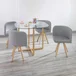 El Juego de comedor Graph está compuesto por una mesa de vidrio y cuatro sillas tapizadas en gris. La mesa tiene un diseño moderno y elegante, con patas de madera natural. Las sillas son cómodas y resistentes, con un diseño vintage que le dará un toque único a tu comedor. El juego de comedor es para 4 personas y está hecho de vidrio y metal, lo que lo hace resistente y duradero. Además, tiene una garantía de 3 meses.