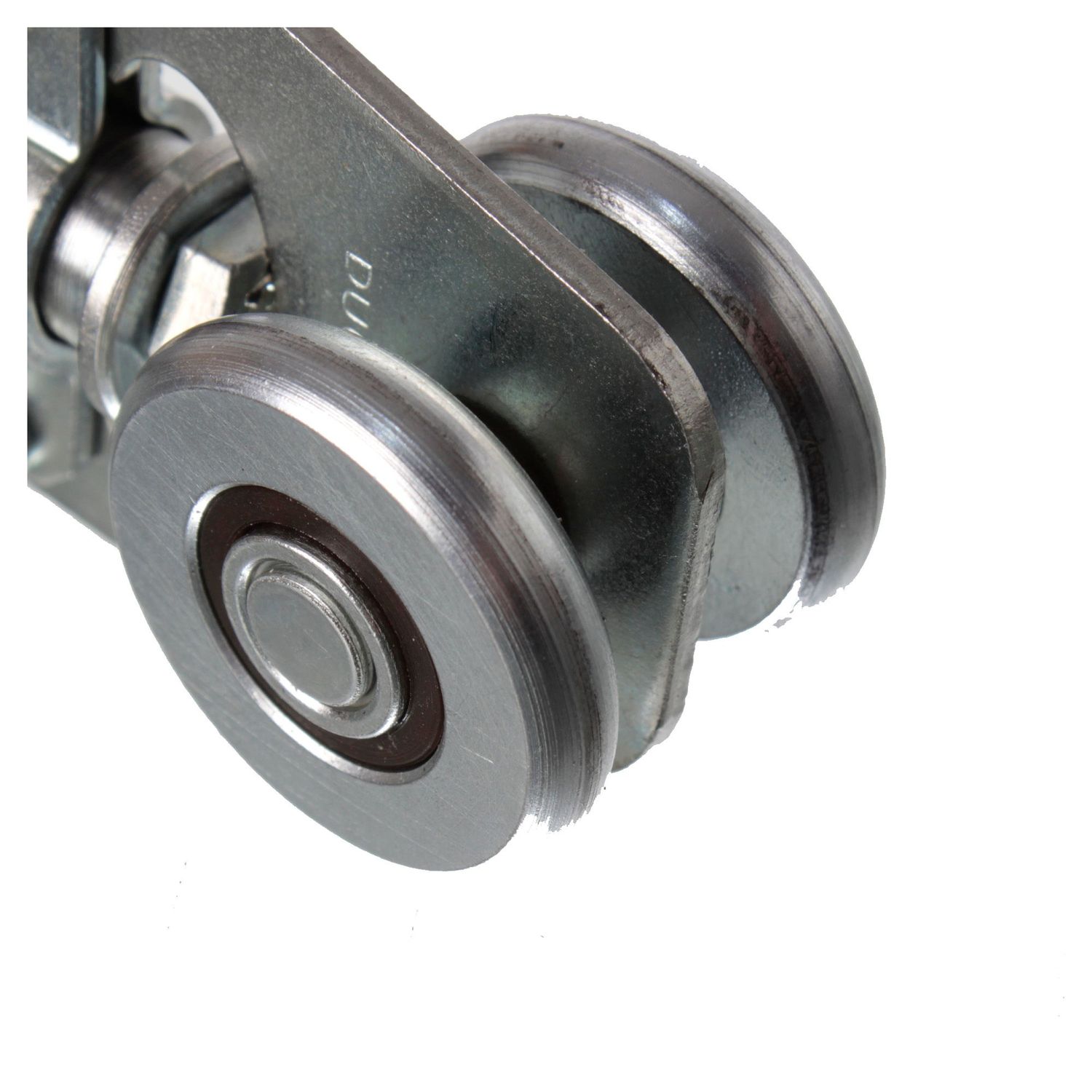 Este carro colgante destaca por sus características de alta calidad. Cuenta con rodamientos sellados que no requieren lubricación ni mantenimiento, asegurando un funcionamiento suave y eficiente. Además, permite cargas de hasta 150 kg por par de carros, brindando una solución robusta y confiable. Su pletina de montaje se puede soldar o apernar, adaptándose a marcos de madera o metal. La resistencia a cargas horizontales es una de sus ventajas, gracias al movimiento axial del carro.