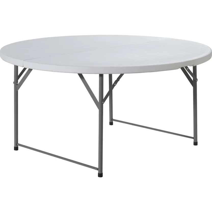 Esta mesa redonda de 150 cm de diámetro está fabricada con acero y plástico, lo que la hace resistente y duradera. Su diseño tipo maleta te permite transportarla fácilmente, gracias a su sistema de plegado y su asa integrada. Además, su color blanco le da un toque elegante y moderno a cualquier espacio. La mesa tiene capacidad para 8 personas y es ideal para usar en el jardín, la terraza o cualquier otro espacio al aire libre.