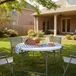 Mesa de exterior plegable blanca tipo maleta