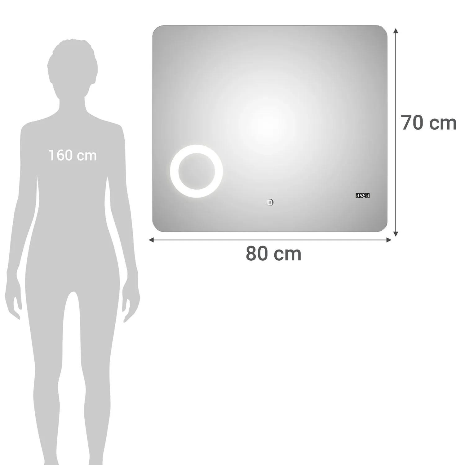 Espejo Los Ángeles con luz, reloj y aumento 70 x 80 cm
