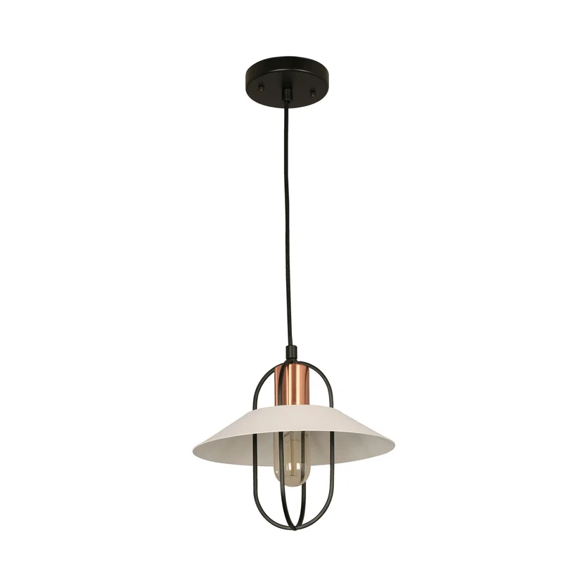 Lámpara de techo colgante blanco y cobre 1 luz E27