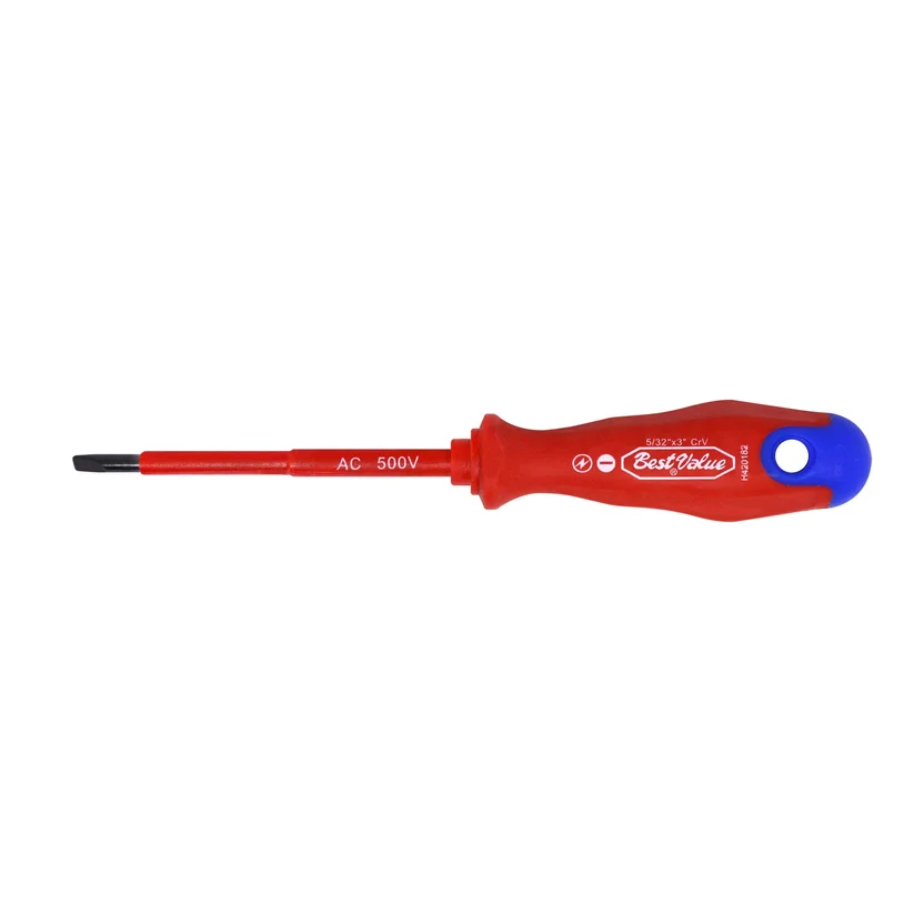 El Destornillador Aislado Plano 3 x 75mm 1000 V de Best Value es la herramienta ideal para trabajar con seguridad en instalaciones eléctricas. Su mango antideslizante te brinda un agarre firme y seguro, mientras que su punta magnética te permite sujetar los tornillos con facilidad. ¡No te arriesgues con herramientas que no te brinden la seguridad que necesitas!