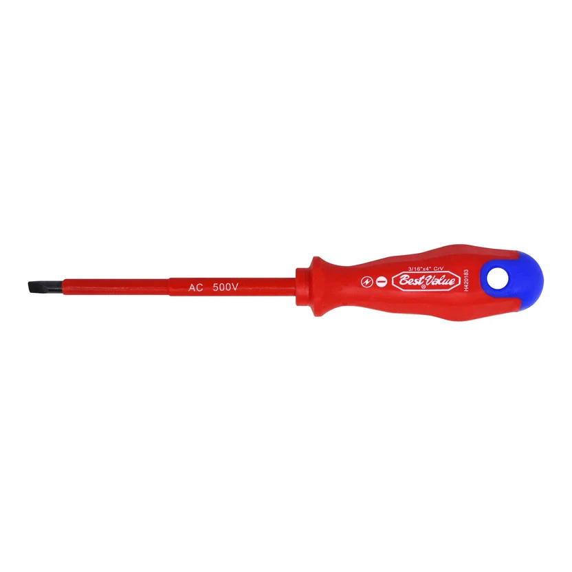 El Destornillador Aislado Plano 5 x 100 mm 1000 V de Best Value es la herramienta ideal para trabajar con seguridad en instalaciones eléctricas. Su mango antideslizante te brinda un agarre firme y seguro, mientras que su punta magnética te permite sujetar los tornillos con facilidad. ¡No te arriesgues con herramientas que no te brinden la seguridad que necesitas!