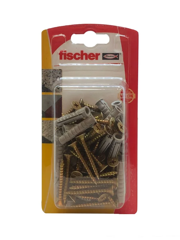 Este producto Fischer, de origen argentino, está fabricado en nylon y viene en un set de tarugo y tornillo. Sus medidas son de 6 ml, lo que lo hace versátil para diversas aplicaciones. El contenido del producto es BST 30 tacos SX6 + TMF 4.5x35.