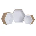 Dale un toque moderno y original a tu hogar con este set de 3 estantes hexagonales de MDF blanco. Su diseño nórdico y sus diferentes tamaños te permitirán crear una composición única en cualquier espacio. ¡Perfectos para exhibir tus objetos decorativos favoritos o para organizar tus libros y plantas!