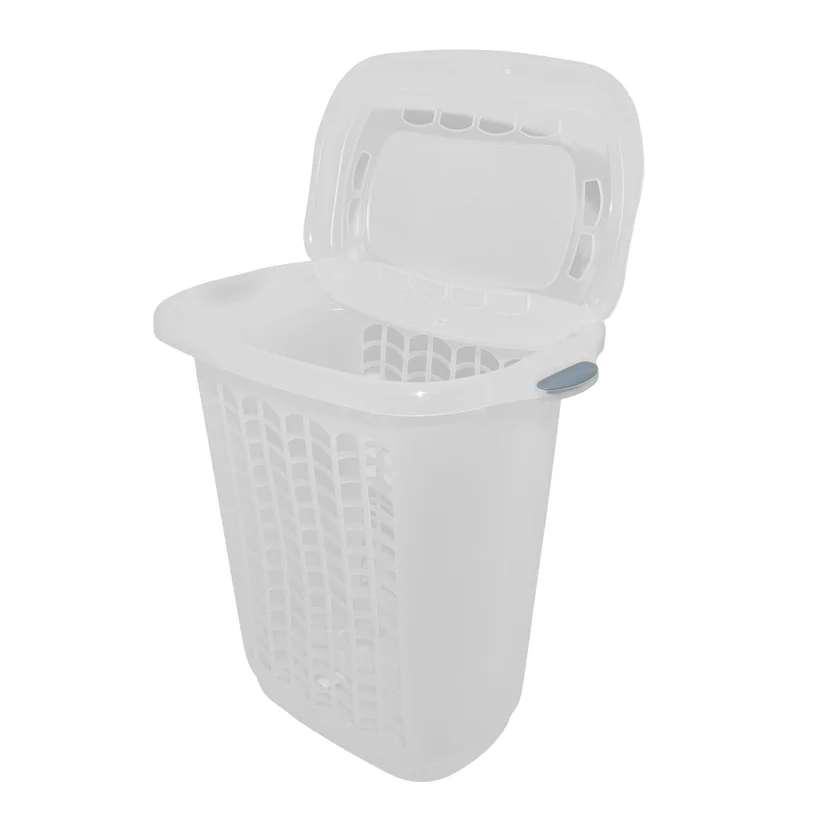 Organizá tu ropa con este práctico cesto de ropa con tapa. Su diseño transparente te permite ver fácilmente el contenido y su tapa mantiene la ropa limpia y ordenada. Con una capacidad de 46 litros, es ideal para familias numerosas o para guardar la ropa sucia en cualquier ambiente de tu hogar.
