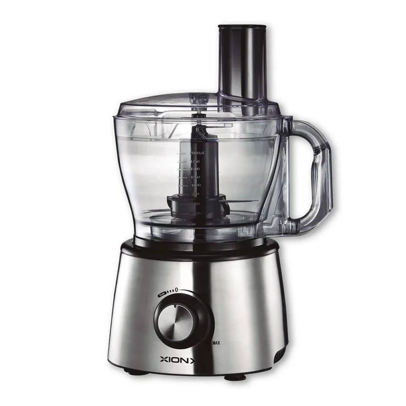 La Multiprocesadora Xion XI-GL1200 cuenta con 10 velocidades para que puedas controlar la textura de tus preparaciones. Su capacidad de 2 litros te permitirá procesar grandes cantidades de alimentos, y su material de acero inoxidable y ABS garantiza durabilidad y resistencia. Además, incluye un vaso de licuadora de 1750 ml con tapón de llenado extraíble, un recipiente de picadora con tolva de alimentación y mango de fácil agarre, y 3 discos rebanadores/rayador/papas en bastones. Con su doble cierre de seguridad y patas anti deslizantes, podrás trabajar con total tranquilidad.