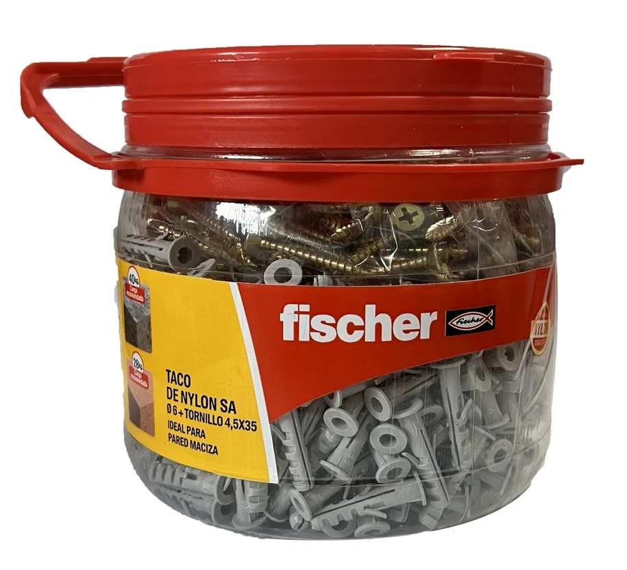 Este producto Fischer, de origen argentino, está fabricado en nylon y tiene un diámetro de 6 ml. Su contenido incluye BA 400 tacos SA6 + TMF 4.5x35, perfecto para tus necesidades de fijación.