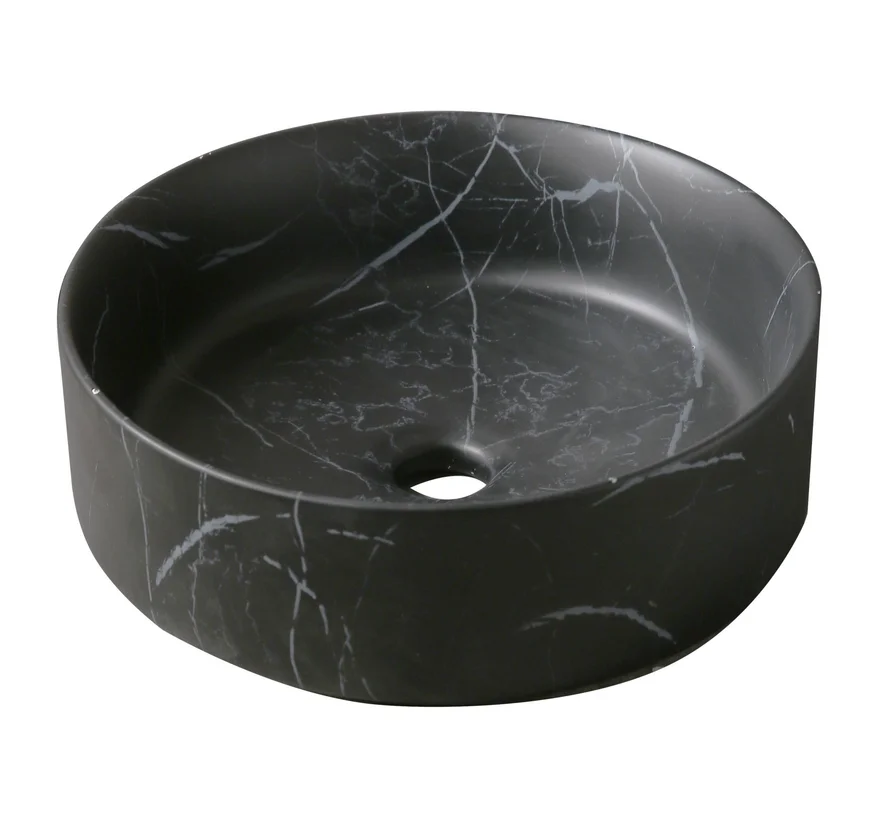 Dale un toque de elegancia a tu baño con la Bacha Circular de Apoyo Nero Marquina de Rozen. Su diseño moderno y acabado mate en color marquina le dará un toque sofisticado a tu espacio. Fabricada en loza de alta calidad, esta bacha es resistente y duradera, ideal para un uso diario. Su forma redonda y su tamaño compacto la hacen perfecta para baños pequeños o con poco espacio.