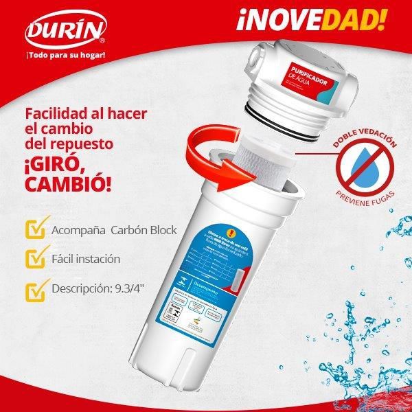 Dale a tu agua un toque de pureza con el Filtro Purificador de Agua. Este filtro de punto de uso es ideal para eliminar sedimentos y cloro, brindándote agua fresca y saludable para tu hogar. Su instalación es sencilla y su diseño compacto lo hace perfecto para cualquier espacio. ¡No te preocupes por la calidad del agua, con este filtro tendrás agua pura y segura para toda tu familia!