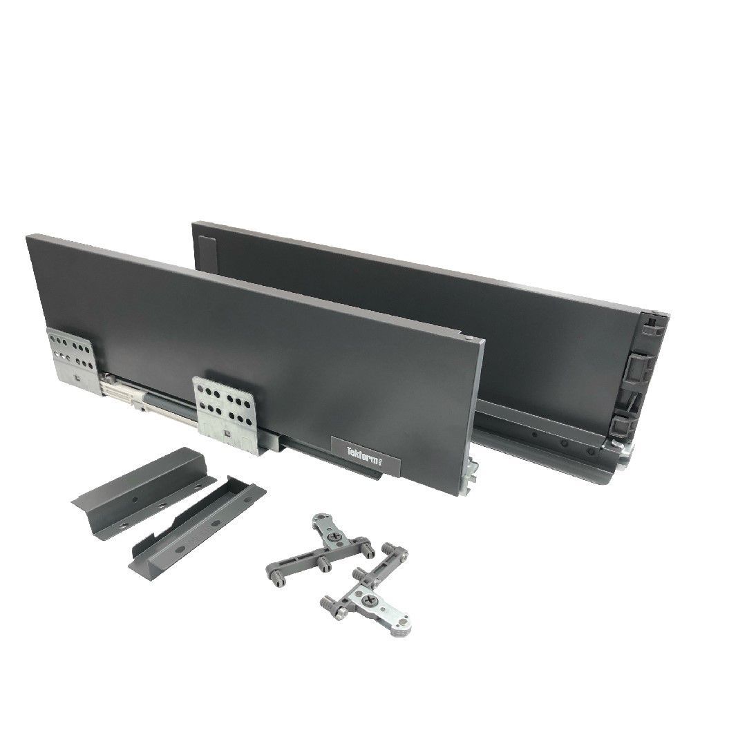 Las Guías con lateral 10 x 45 cm de Titus están fabricadas en acero cincado, lo que garantiza su resistencia y durabilidad. Su capacidad de carga de 40 kg te permite almacenar objetos pesados sin problemas. Además, cuentan con un sistema de ajuste lateral y de altura, lo que facilita su instalación y te permite personalizar la altura de tus cajones. El set incluye todo lo necesario para la instalación, incluyendo correderas, laterales, conectores frontales y traseros, y tapas embellecedoras.