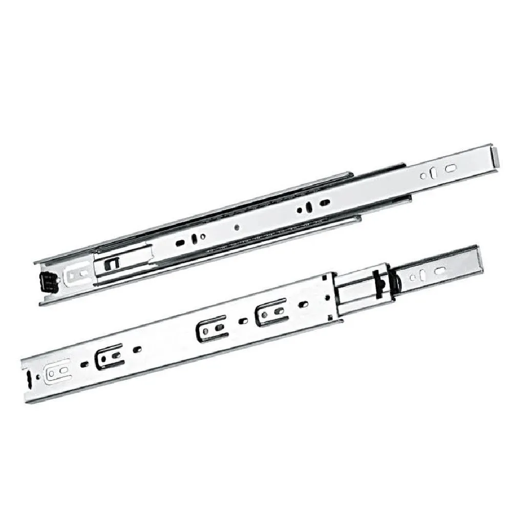 Estas correderas están fabricadas en acero cincado, lo que las hace resistentes a la corrosión y duraderas. Su diseño de extracción total te permite acceder a todo el contenido de tus cajones con facilidad. Además, su color gris se adapta a cualquier estilo de decoración.