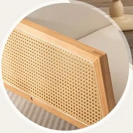 La mecedora tiene un ancho de 60 cm, una profundidad de 86 cm y una altura de 72 cm. Está diseñada para una sola persona y su estructura está hecha de madera y ratán. El tapiz es de microfibra de color blanco y la estructura es de color natural. La mecedora requiere un armado de dificultad media.
