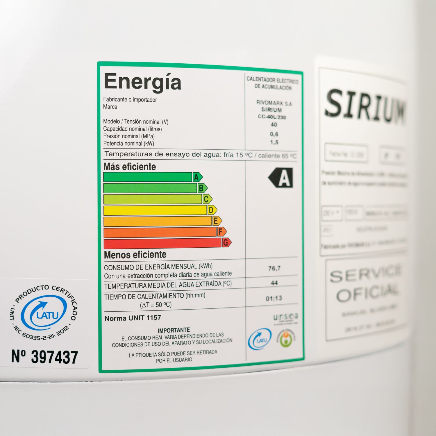 Este calefón eléctrico de 40 litros ofrece una temperatura máxima de 70°. Su eficiencia energética clase A te ayudará a ahorrar en tu factura de luz. Con un alto de 66 cm y un ancho de 41 cm, se adapta a diferentes espacios. El calefón cuenta con una garantía de 20 años en el tanque y 1 año en los componentes eléctricos.