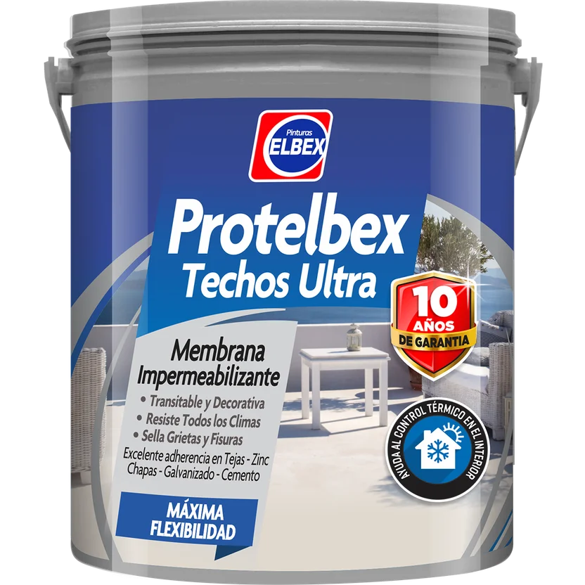 Protegé tus espacios con la Membrana líquida Protelbex ultra blanca satinada de 20 L. Este impermeabilizante de calidad premium, con acabado satinado y color blanco, es ideal para techos, losas y muros. ¡Dale a tus espacios la protección que necesitan!