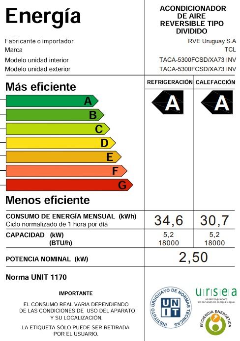 Aire acondicionado 18000 BTU inverter split TACA 5300