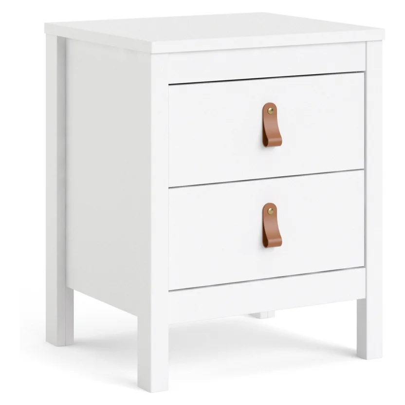 ¡Dale un toque de estilo a tu dormitorio con la Mesa de luz Madrid! Con su diseño vintage y color blanco, esta mesa de luz de MDF con 2 cajones es perfecta para complementar tu espacio. Sus manijas de cuero le dan un toque único y elegante.