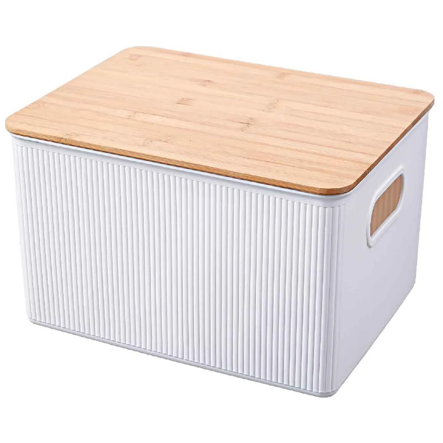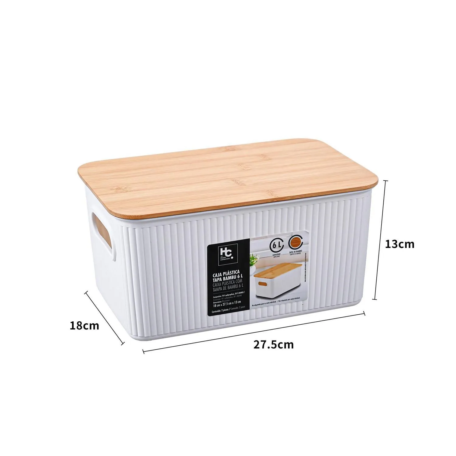 ¡Organiza tu hogar con estilo y funcionalidad! La Caja plástica de bambú de 6 L con tapa es la solución perfecta para mantener tus espacios ordenados. Su diseño nórdico y color blanco la convierten en un elemento decorativo que, además, te brinda la capacidad de almacenar tus objetos de manera práctica.