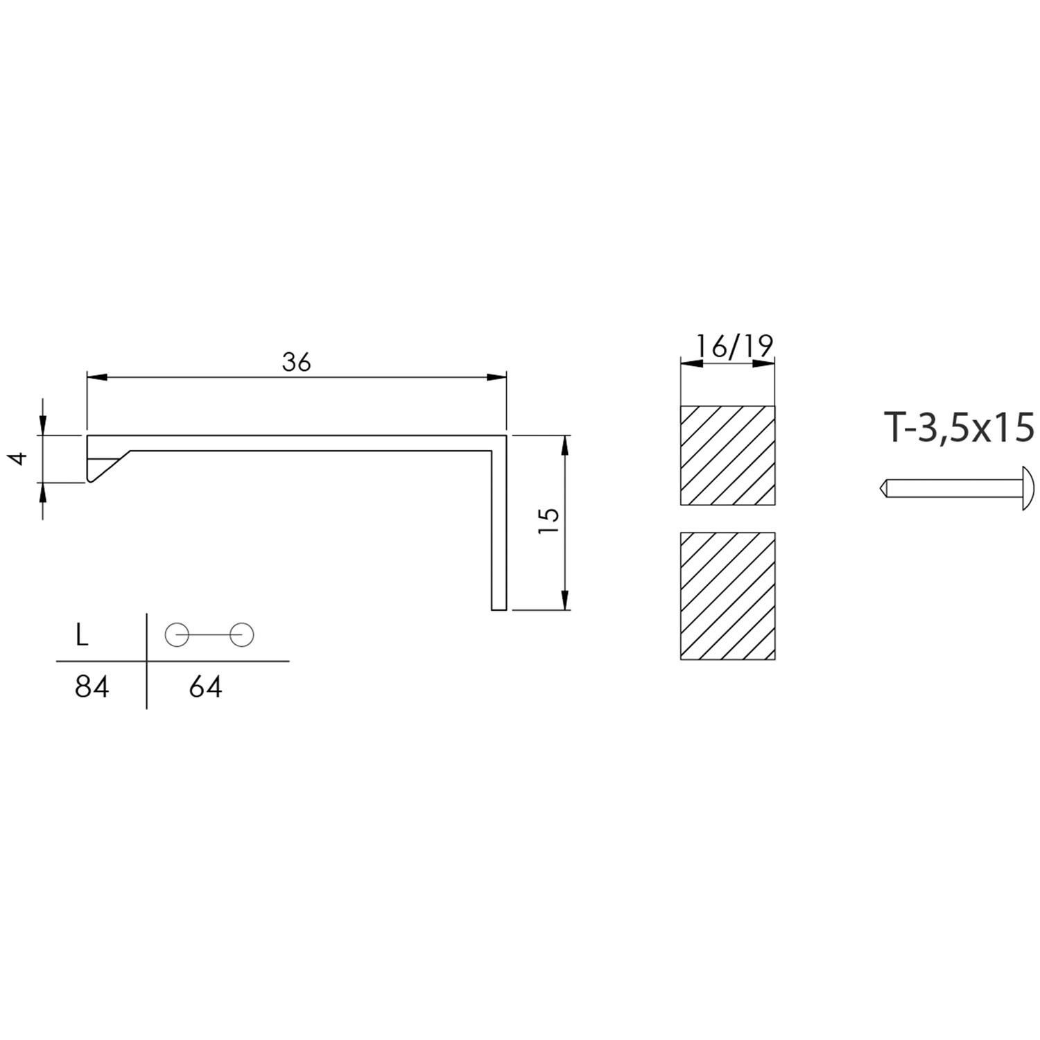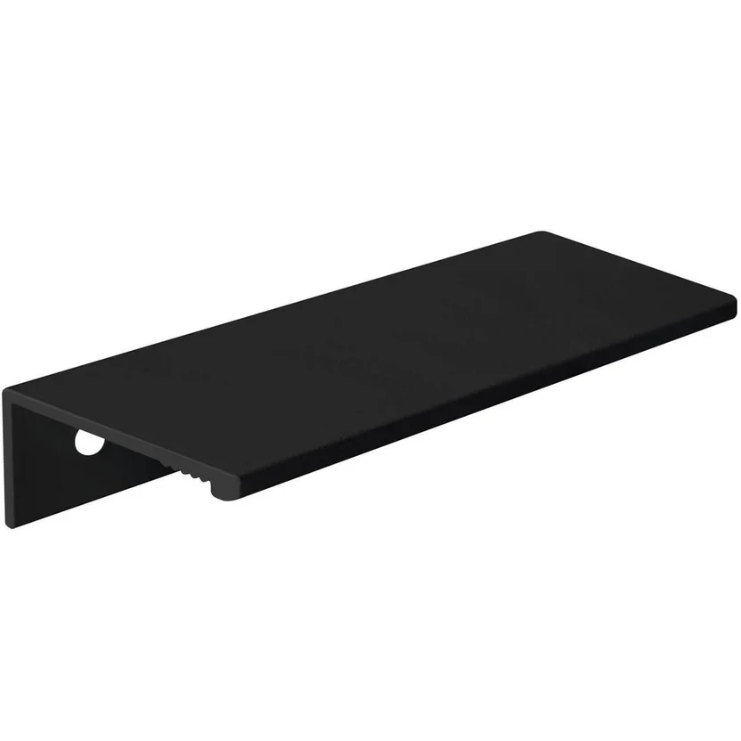 Este perfil de aluminio, fabricado en China, tiene un largo de 84 mm y un ancho de 36 mm. Su diseño rectangular y color negro mate lo hacen versátil para diferentes estilos de muebles. El perfil viene en una presentación de una unidad y está hecho de aluminio.