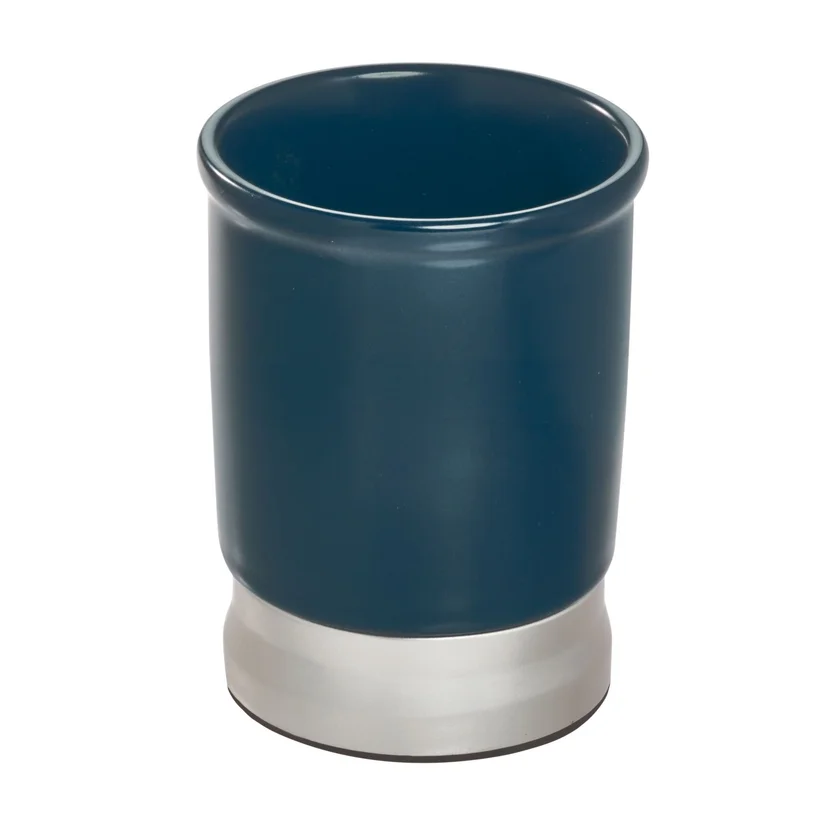 El Vaso Bexley Navy está hecho de cerámica de alta calidad, lo que lo hace resistente y duradero. Su color azul marino le da un toque elegante y moderno a tu baño. Además, su tamaño compacto lo hace perfecto para guardar tus cepillos de dientes o maquillaje. El vaso tiene un diámetro de 7.62 cm y una altura de 10.16 cm, lo que lo hace ideal para cualquier espacio.