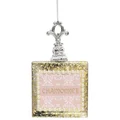 Dale un toque elegante y festivo a tu decoración navideña con este adorno de botella de perfume. Su diseño plateado y rosa, con detalles en dorado, le dará un toque sofisticado a tu árbol de Navidad. Es perfecto para crear un ambiente cálido y acogedor en tu hogar.