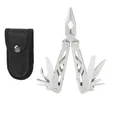 Este alicate es de origen chino y está fabricado con materiales de alta calidad. Su diseño incluye un cuchillo, abre botellas, abre latas, destornillador Phillips, punzón, alicate estándar, alicate de punta larga, corta alambre, lima, sierra y destornillador plano mediano y pequeño. Además, viene con una funda para facilitar su transporte y almacenamiento.