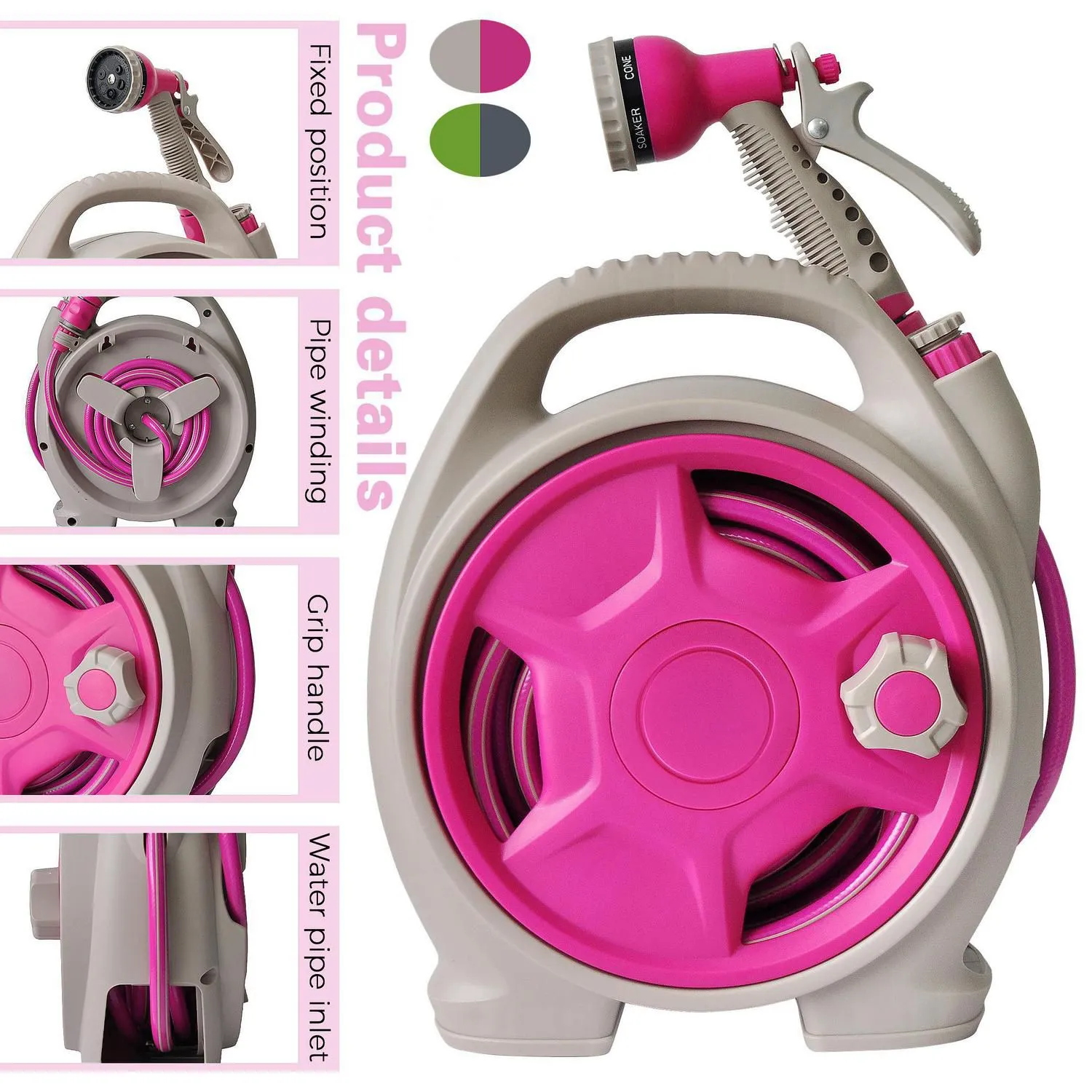 Esta manguera está fabricada en plástico resistente, lo que asegura su durabilidad. Incluye un carrete para facilitar su almacenamiento y evitar enredos. Además, viene con conectores, adaptador de grifo, boquilla y una manguera de conexión principal de 1.5 m, para que puedas usarla de inmediato. El color es surtido, por lo que recibirás uno al azar.