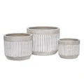 Este set incluye tres macetas de cerámica, ideales para crear composiciones armoniosas. El macetero grande mide 26 cm de alto y 33 cm de ancho, el mediano tiene 21 cm de alto y 26 cm de ancho, y el chico mide 18 cm de alto y 21 cm de ancho. Su estilo clásico y material de cerámica aseguran durabilidad y un aspecto sofisticado.