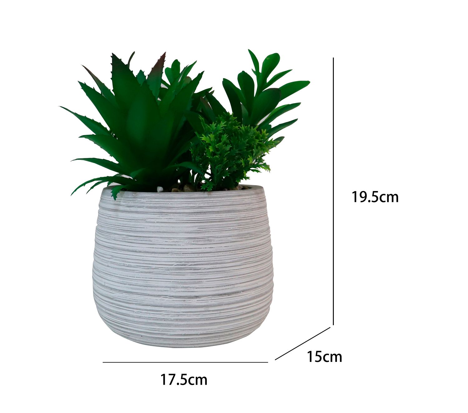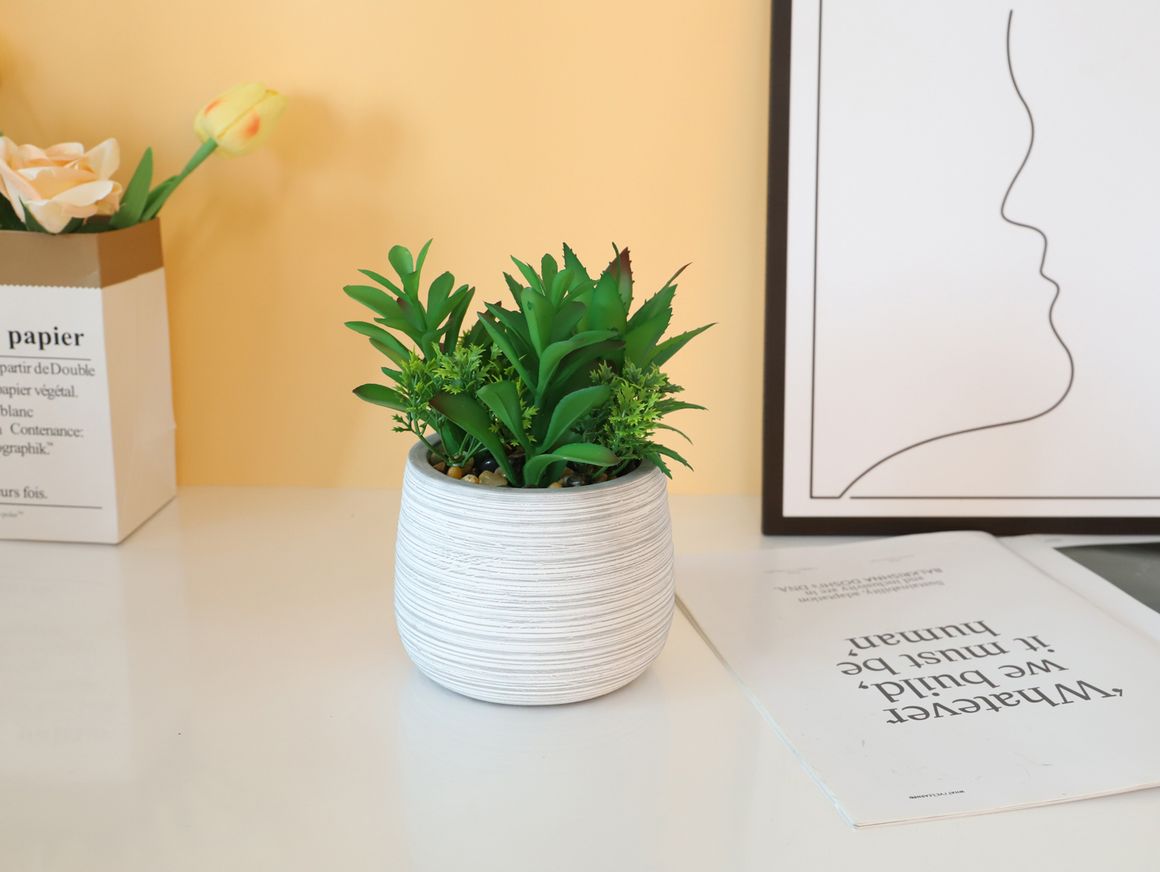 Dale un toque de naturaleza a tu hogar con esta planta artificial en un florero de 19.5 cm de alto. Su diseño elegante y moderno, con un color gris y verde, se adapta a cualquier espacio. ¡Es perfecta para añadir un toque de frescura sin necesidad de cuidados!