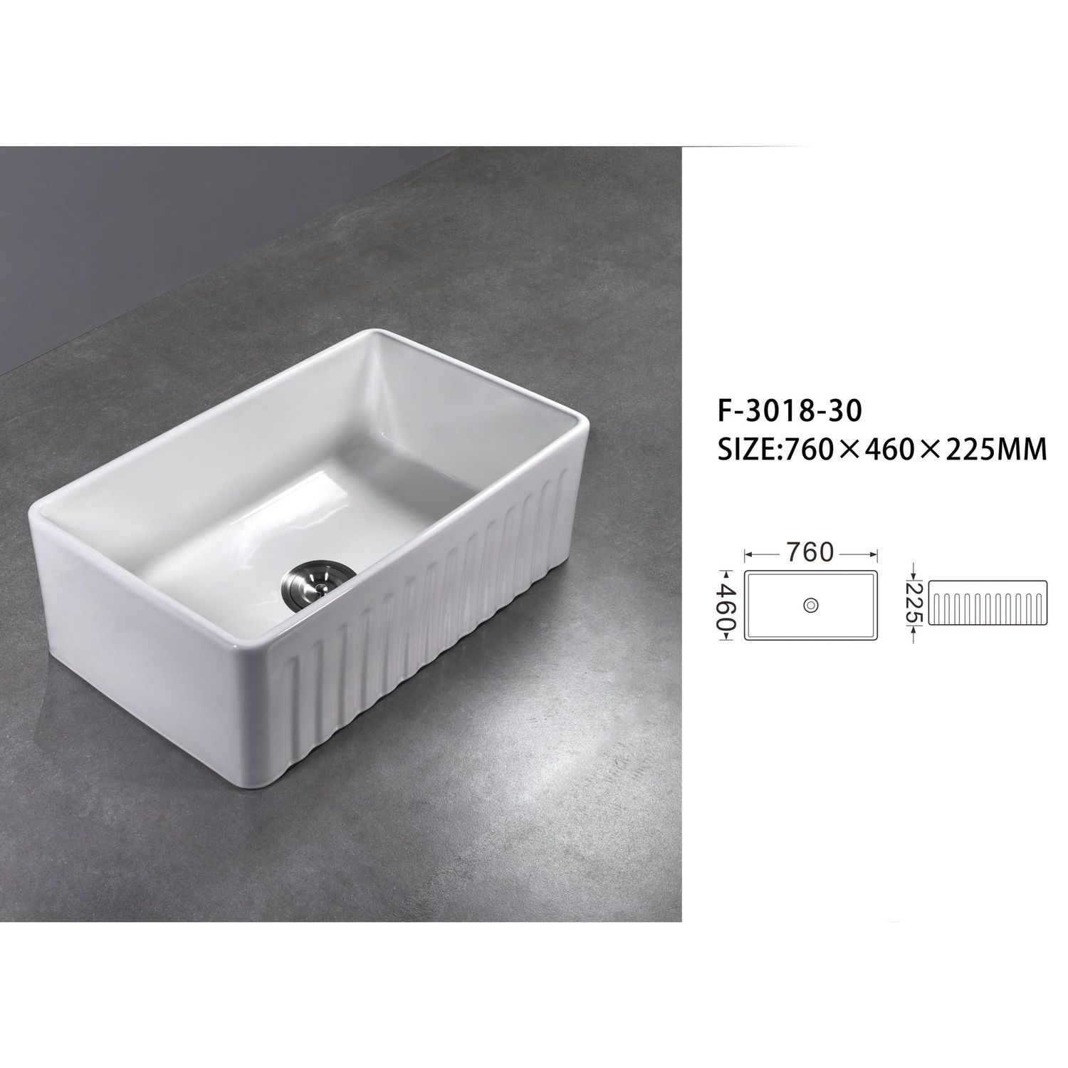 Este lavaplatos de instalación empotrada, modelo F-3018-30, está fabricado en porcelana y cuenta con una cubeta. Su color blanco y diseño sin información lo hacen versátil para cualquier estilo de cocina. Fabricado en China, este lavaplatos ofrece una capacidad volumétrica de 89 l.