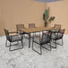 Este juego de comedor, modelo Granada, cuenta con una mesa de 74.5x180x90 cm y sillas de 84x64x57 cm. Las sillas tienen apoyabrazos y están fabricadas en acero, PE Mimbre, poliéster y polimadera, lo que garantiza durabilidad y resistencia. El juego es de origen chino y soporta un peso máximo de 136 kg. Se recomienda limpiar con jabón suave y no exponerlo a temperaturas extremas.