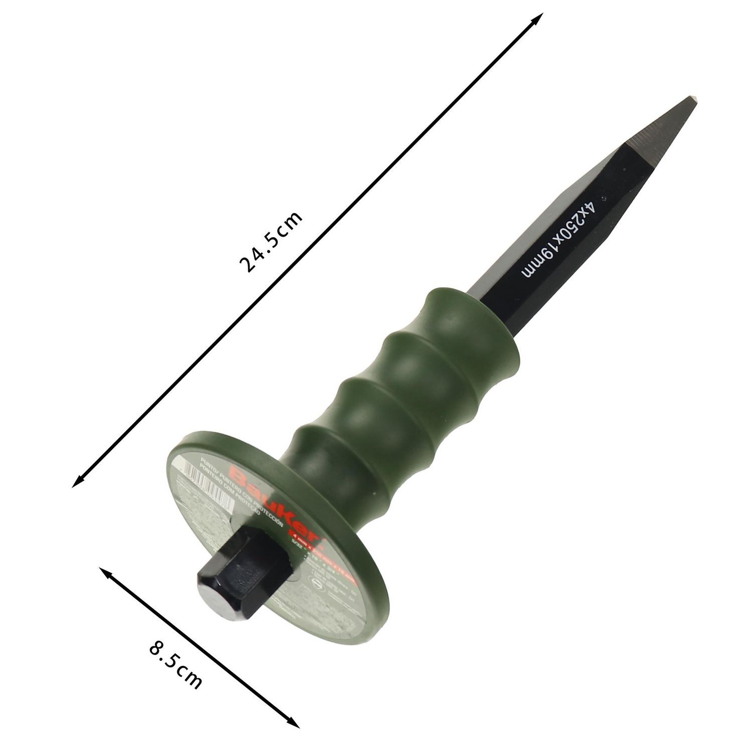 Este cincel Bauker está diseñado para trabajos pesados y cuenta con un largo de 25 cm y un ancho de 8.5 cm. Su material del mango es plástico y el material de la cabeza es acero, lo que garantiza durabilidad y resistencia. El modelo E891025B es ideal para tus tareas.