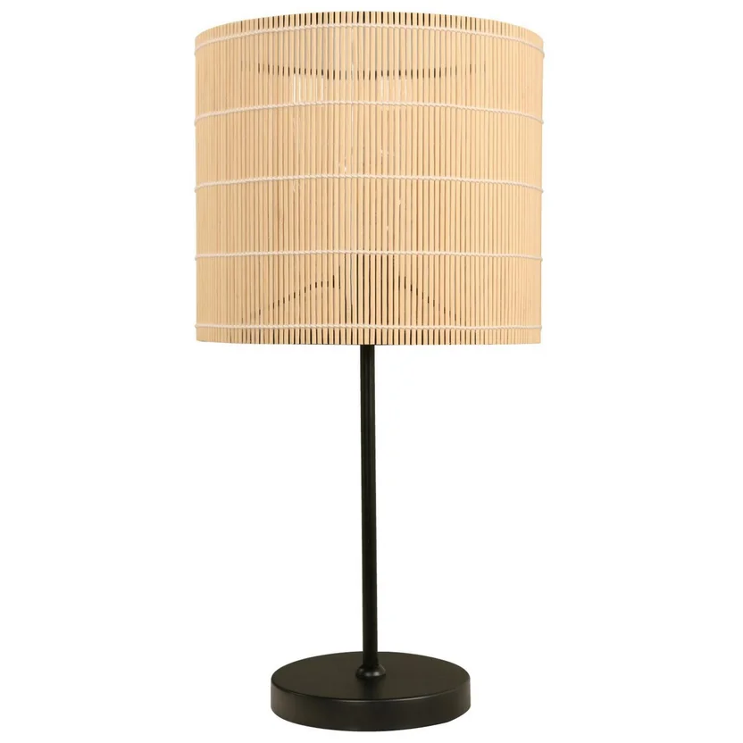 Dale un toque de estilo boho chic a tu hogar con la Lámpara de mesa Fray. Su diseño único, con pantalla de bambú natural y base negra, crea una atmósfera cálida y acogedora. Con una altura de 49.5 cm y un largo de 25.5 cm, esta lámpara es perfecta para mesas de noche o escritorios. Ilumina tus espacios con un toque de elegancia y sofisticación.