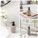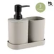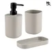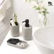 Este set de baño incluye 3 piezas: un dispensador de jabón con capacidad para 430 ml, un vaso también con capacidad para 430 ml, y una bandeja. El dispensador mide 7.7 x 16.8 x 7.7 cm, el vaso 7.7 x 10.5 x 7.7 cm y la bandeja 15.8 x 2 x 8 cm. Fabricado en polipropileno, este set es una opción duradera y práctica para tu baño.