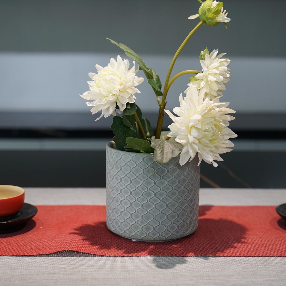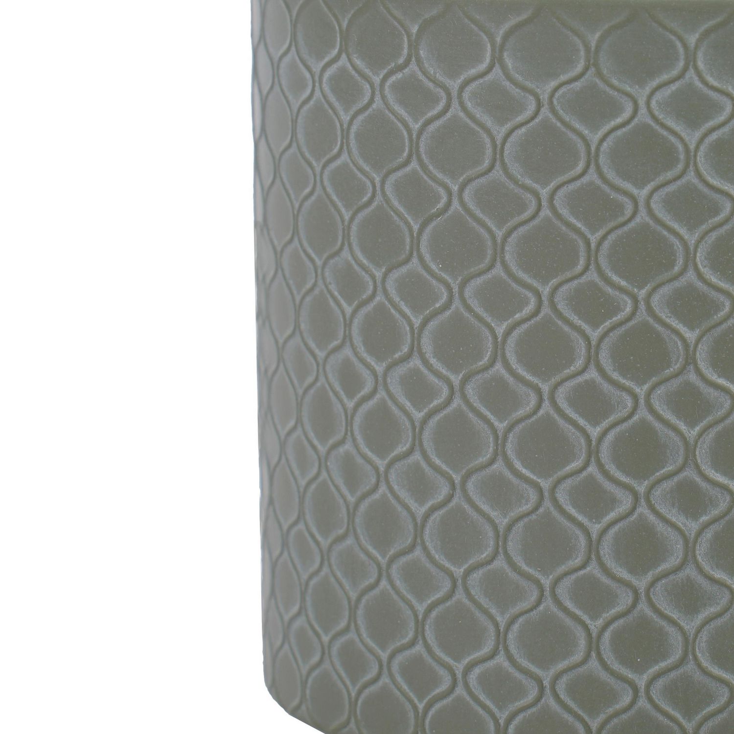 Dale un toque de estilo a tu hogar con esta maceta de cerámica de 12 cm de diámetro y 11.5 cm de alto. Su diseño clásico y elegante en forma de cilindro, con un atractivo patrón grabado, la convierte en la opción perfecta para decorar cualquier espacio. Disponible en varios colores, el color que recibirás será una sorpresa. ¡No esperes más y dale vida a tus plantas!